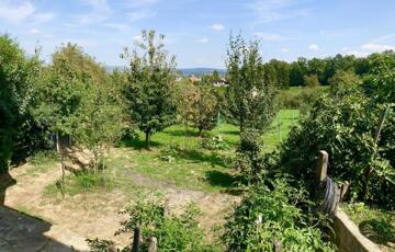 A bekerített telek 1320 négyzetméteres, gondozott, enyhe lejtésű, 25 gyümölcsfával, veteményessel, kis tárolóval rendelkezik.