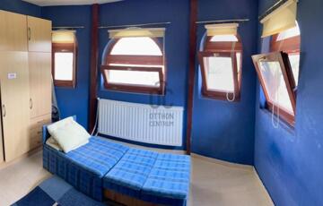 A panorámás ház kétszintes, az alsó szintjén egy hálószoba, egy fürdőszoba+WC-vel, egy konyha kamrával, egy nagyobb nappali található az előszobán kívül, innen jutunk fel lépcsőn az emeletre, ahol 3 kényelmes méretű, különnyíló szoba van.